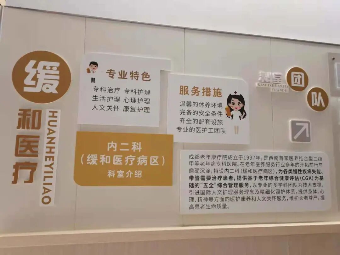 成都老年康疗院作为成都市首批安宁疗护试点机构,于今年7月1日正式开设“缓和医疗病区”。该病区共开设39张床位,环境温馨,安全舒适,配套设施齐全,并有专业的医护工团队协作管理。